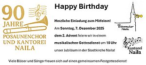 - Adventsmusik zum Rupperichmarkt Am Samstag, den 29. November 2025 um 17 Uhr laden wir Sie herzlich in die Stadtkirche Naila ein. Das Schwarzenbacher Vokalensemble wird unter der Leitung von Kantorin Sophia Lederer ein abwechslungsreiches und stimmungsvolles Programm mit dem Schwerpunkt auf englischer Chormusik von John Rutter, David Willcocks u. a. präsentieren. Lassen Sie sich von adventlichen und weihnachtlichen Klängen auf die besinnliche Zeit des Jahres einstimmen. Der Eintritt ist frei.
